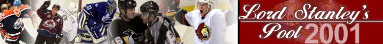 To no one's surprise, the New Jersey Devils have won their series against Pittsburgh, setting up the final everyone expected. It's been a tough couple days for Camillo Cipriano, who lost 5 players, and Tim Smith, 4. Tonight's victims were Mario Lemieux, 26 picks, Jaromir Jagr, 18, Alexei Kovalev, 2, Martin Straka, 1, and Hans Jonsson, 1. Jonsson didn't register a point in his 16 games.